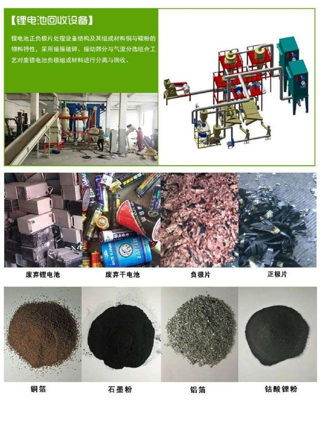 廢鋰電池如何環保處理成為再生資源,首先說鋰電池中有大量的金屬銅和鋰電粉,均屬于價值高昂的稀缺資源,市場上廢舊的鋰電池每年數以千萬噸產生,回收處理這些廢舊鋰電池有極高的商業價值,鋰電池的使用壽命在3年左右,目前廢舊的鋰電池種類繁多,有磷酸鐵鋰電池、鈷酸鋰電池、錳酸鋰電池、手機鋰電池、18650型鋰電池、電動汽車鋰電池等大量的廢棄鋰電池、回收這些廢舊鋰電池要首先分類、鋰電池的種類不同所帶來的價值不同,在鋰離子電池負極材料中,除石墨化中間相碳微球(MCMB)、無定形碳、硅或錫類占據小部分市場份額外,天然石墨和人造石墨占據著90%以上的負極材料市場份額。